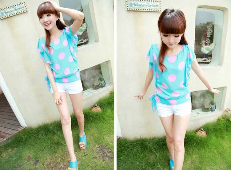蓬松的波点衫袖口,大方得体的穿着,加上牛仔短裤的搭配,整体感和立即体感都很强,简约,时尚,不失大方,是时下潮流界里爱美的MM们波点衫搭配的首选哦!