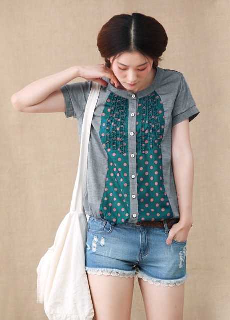 这样一款波点衫,简约,又不失时尚,更有邻家女孩的气质,气质张扬,搭配这样一条短裤,穿出来的是年轻范,又不失潮流。