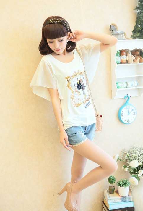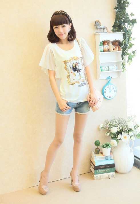 矮个子的MM们可选择宽松的雪纺T恤来遮住上半身的矮小来达到显高的目的,搭配一条牛仔短裤,不仅可以掩饰身体上的矮小更显得甜美可爱。富有动感和时尚感,让人看起来更加的美婉动人,真的很不错的哦。