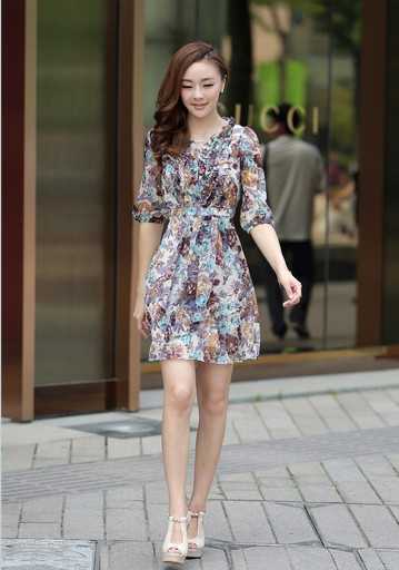 高腰的雪纺裙,简约,大方,夏季里浪漫的气息,在这款高腰的雪纺裙上体现出来了,同时搭配那么一双鱼嘴鞋,更加的温婉动人。