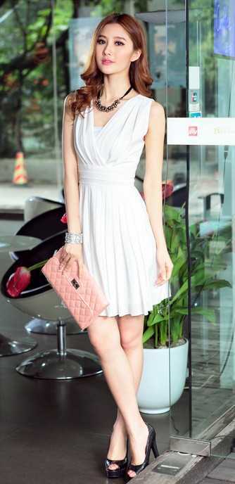 这款雪纺裙的设计理念是收腰,腰际的设计很显身形的曲线美,同时搭配那么的一个手拿包,不仅时尚,同时又不失潮流,在夏季街头里这样的装扮,着实是这个盛夏不可或缺的风景线。