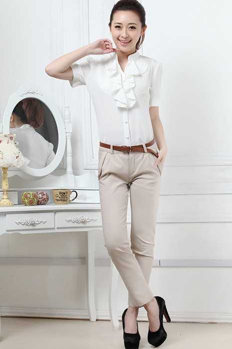 1、白衬衫+扎脚裤