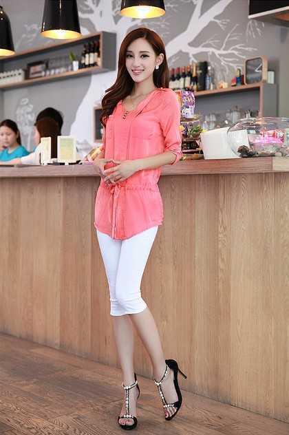收腰的衬衫,看起来非常的合身,显高,显瘦,婉约风显而易见,同时下搭一条白色的中裤,尺寸都是恰恰好,给这个炎炎夏日带来了清新、优雅的气息。