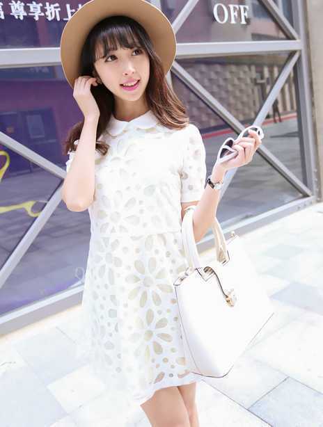 春季镂空蕾丝连衣裙,娃娃领设计,很时尚甜美。