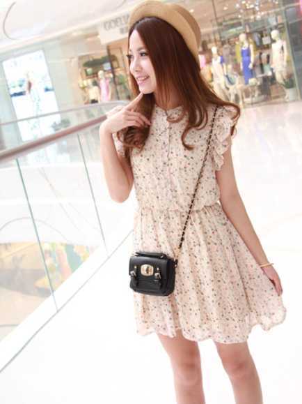 日系小飞袖雪纺连衣裙