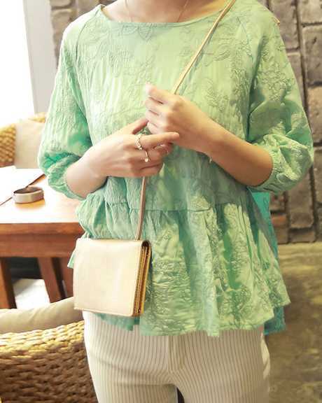 绿色夏季纯棉娃娃衫,百褶设计轻松遮肉显甜美感。