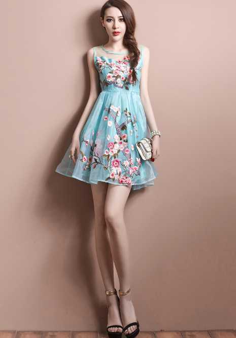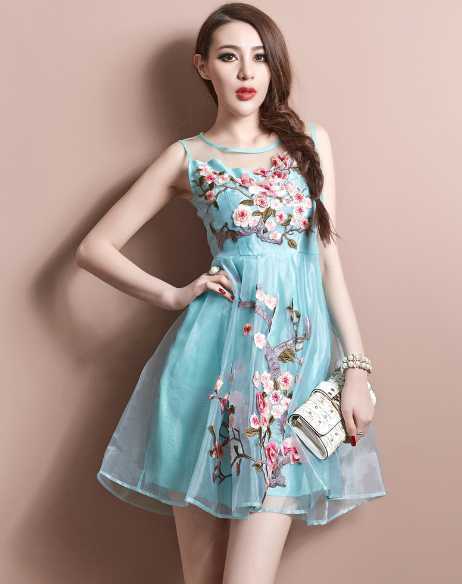 高档欧根纱民族风刺绣连衣裙,细腻的刺绣彰显高品质,百褶高腰设计,让你穿着显高更显气质。