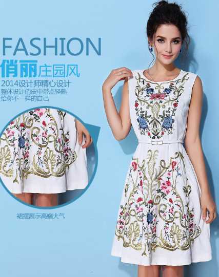 精美绣花夏季连衣裙,彰显高端大气,经典圆领设计 ,微露香肩性感又迷人。