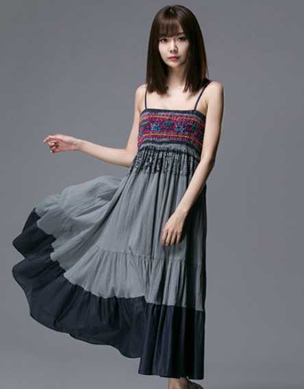 夏季吊带连衣裙,神秘的民族刺绣工艺,展现出纯美的民族韵味。