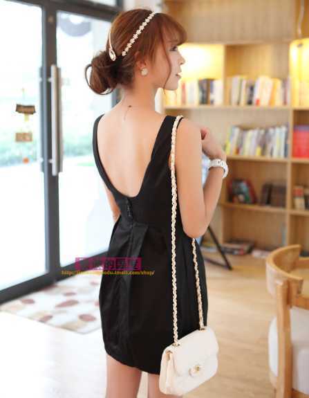 露背无袖连衣裙,大秀性感背部,时尚又清凉。