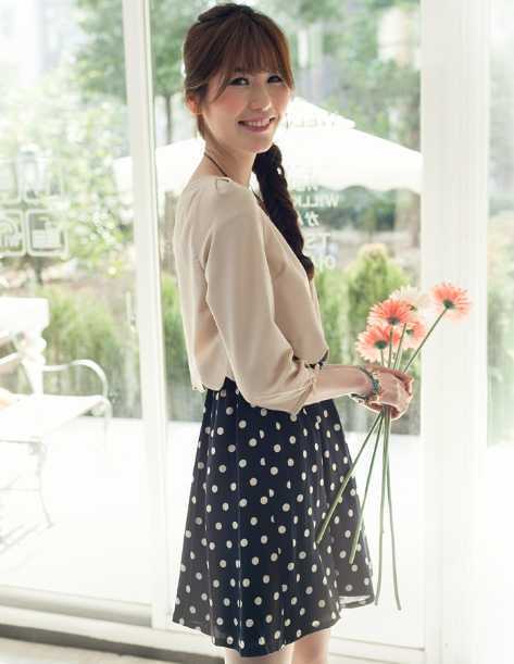 小波点假两件连衣裙,随意搭配穿出甜美淑女look。