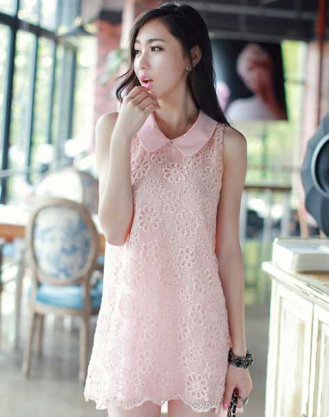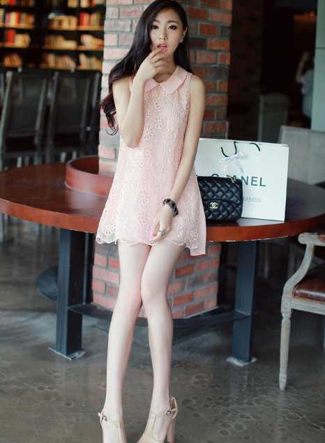 娃娃领背心淑女裙,娃娃领设计,甜美不失俏皮感,很减龄喔。