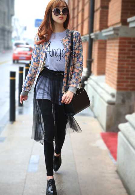 侧面看碎花棒球外套,修身时尚,独特灰色与碎花拼接,凸显独特的时尚感,轻松助你应对昼夜温差大的问题。