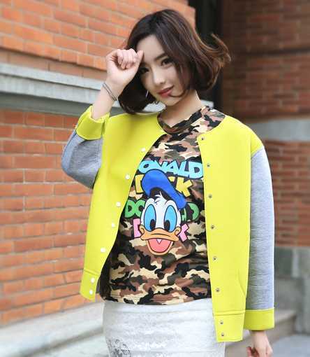 质感超好的一款薄款棒球外套,亮黄色的亲肤纯棉,随意搭配穿出超养眼吸睛look。