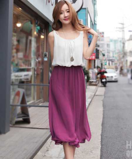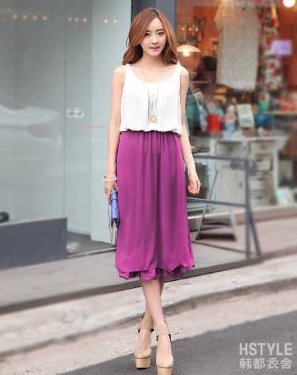 紫色雪纺飘逸连衣裙,独特拼色款彰显优雅气质,飘逸百褶裙子在炎热夏天穿着最合适不过,飘逸灵动感展现优雅温婉女人味,裸色超高跟鞋子穿着,凸显高挑好身材,轻松让你蜕变小清新女神。