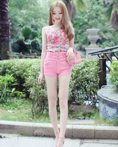玫红色碎花修身裹胸背心衫,露出香肩和锁骨,尽展性感诱惑,搭配紧身玫红色高腰裤,秀出纤细美腿,搭配与裤子同色系高跟鞋,更凸显时尚感,穿出甜美淑女味。