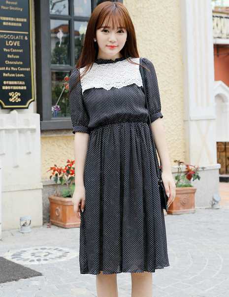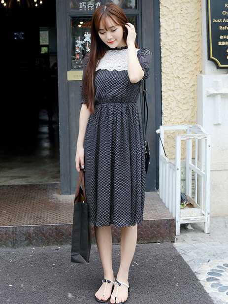 蕾丝波点夏季连衣裙,俏皮的波点点缀增添衣衣时尚度,搭配黑色迷你包,实用又时尚,搭配蝴蝶结夏季拖鞋,温婉淑女范尽展。