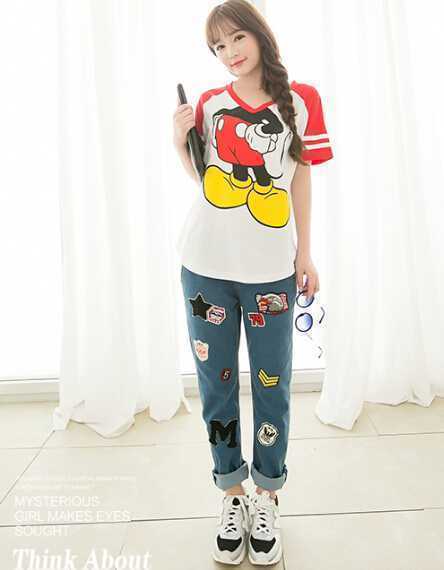 夏季米奇卡通t恤衫,穿出减龄可爱甜美造型,让MM瞬间减龄5岁喔。