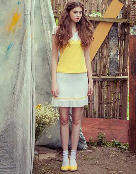 亮眼黄色欧美风t恤衫,为单调的夏天增添一些艳丽色彩,搭配白色荷叶边包臀裙,塑造性感翘臀显好身材,搭配黄色高跟鞋,一身亮黄色的装扮绝对让你回头率百分百。