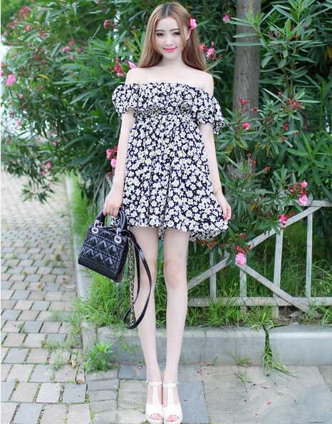 炎热的夏天换上一款一字领花朵连衣裙,让你秀出性感和享受凉爽感喔。