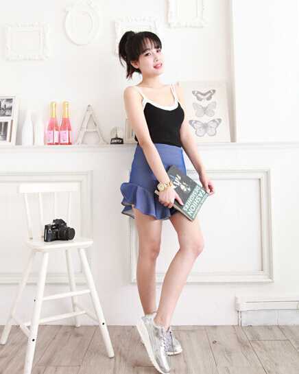 百搭的黑色吊带衫,紧身款式 修饰出前凸后翘好身材, 搭配短裙,青春又甜美 ,瞬间为你们的约会增加新鲜剂喔。