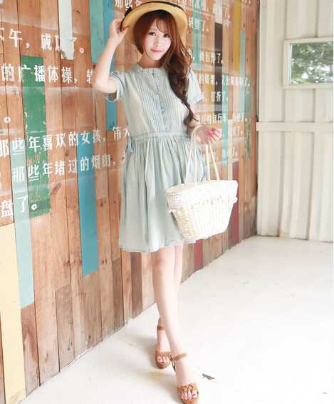 嫩蓝色森林系夏季长裙,百褶裙摆穿出甜美可爱感,搭配复古编织高跟鞋,让MM秀出高挑身材,出游踏青编织帽是不可缺少的哦。