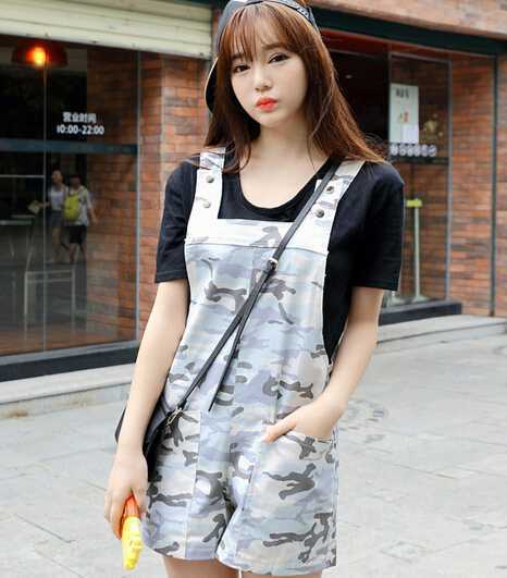 迷彩减龄款背带裤,穿出帅气中性look,随意穿梭在校园里,很吸睛养眼喔。