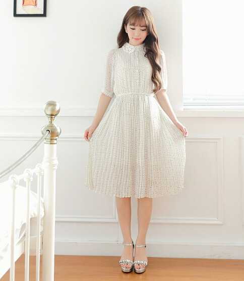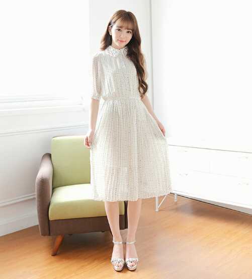 女生都爱仙仙的感觉,你也与小编一样的感觉吗?飘逸的雪纺连衣裙,能让你展现出柔美的女性气质,娃娃领让你更减龄喔,配上一双高挑的鞋子,即使娇小的女生也能穿出高挑美。