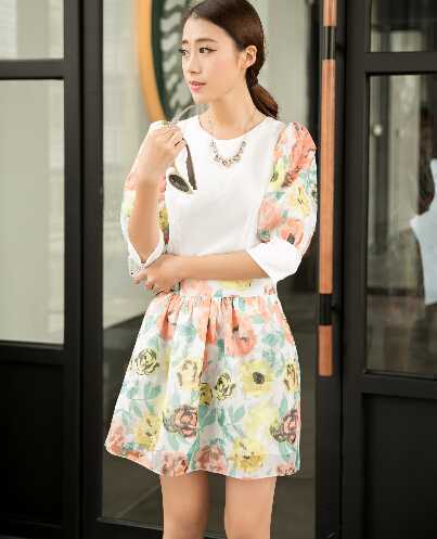 欧根纱印花裙,给人带来小清新的感觉,艳丽的印花色彩,衬出白皙好肤色, 搭配华丽的项链,瞬间让你造型提气儿,夏天外出带来墨镜超酷喔。