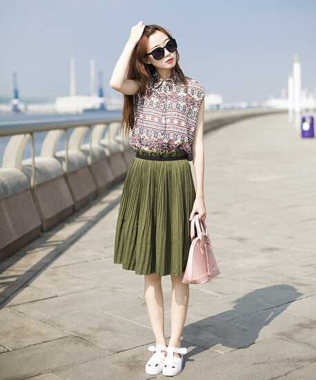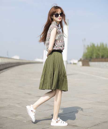 复古味道的雪纺衬衫,搭配带点复古文艺气息的雪纺半身裙,很显温婉知性的小女孩,在海边游走,很文艺。