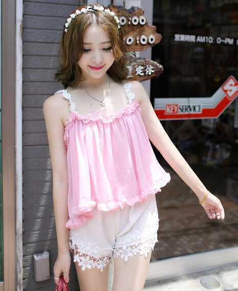 夏季桃粉色一字领雪纺衫,斗篷披肩式独特不失时尚感,搭配碎花短裤,秀出美腿与性感味道,加上蝴蝶结拖鞋,好可爱哦。