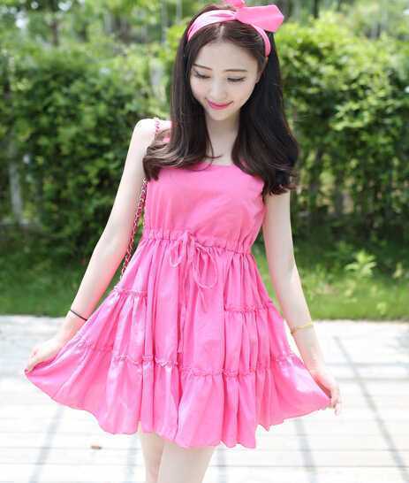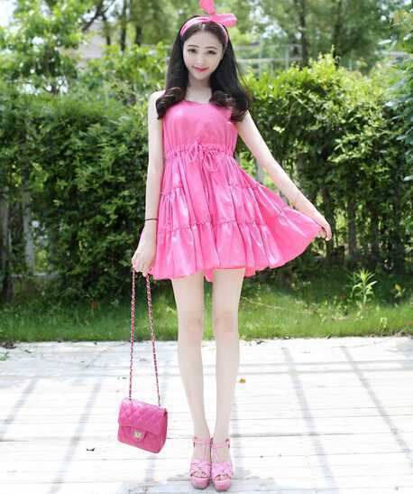 背心连衣娃娃衫,可爱又减龄,搭配粉色高跟鞋,瞬间增高显气质哦,配上小兔子发饰,提升甜蜜度,出行这样穿最出镜。