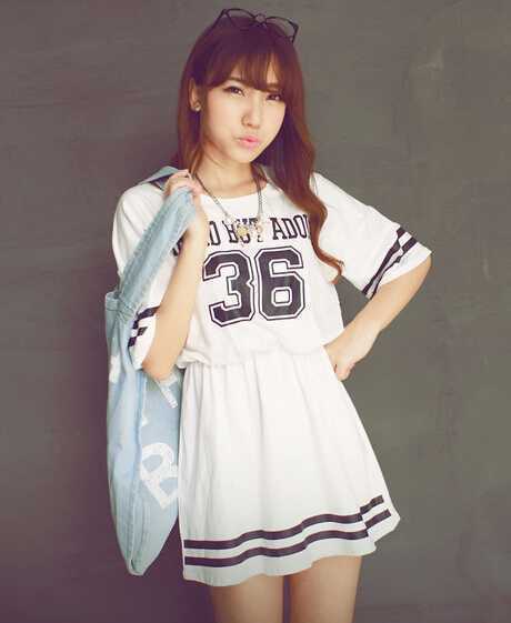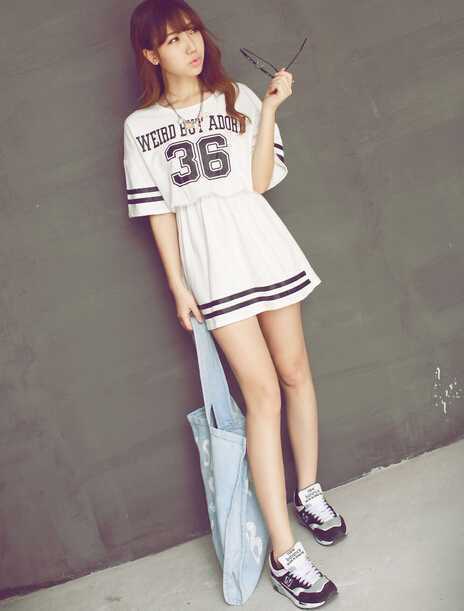 白色的 运动风连衣裙,是不是很简约个性呢,收腰式凸显出细腰秀出好身材,搭配运动鞋,很休闲运动呢,出外带来墨镜超酷哦。