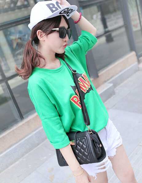 宽松的t恤衫,搭配破洞牛仔短裤,秀出美腿之余,很凉爽喔。