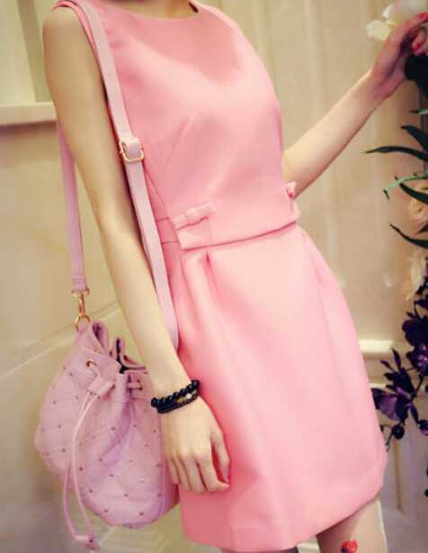 薄款夏装无袖连衣裙,让你在夏天不闷热,随意拎着粉色系包包,超粉嫩的一身搭配,由内而外的展现出你的淑女味道。
