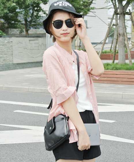 粉色时髦衬衫,很甜美和可爱呢,搭配白色打底衫,清纯而显气质,下身则穿黑色短裤即可,穿出小清新休闲look,让你出门赚足回头率。
