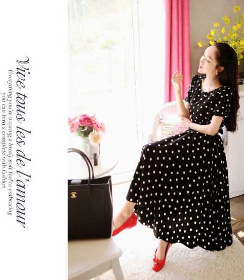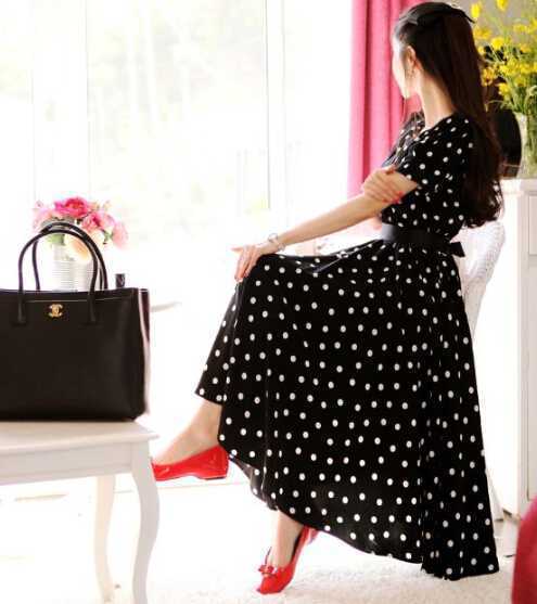 黑色波点连衣裙,秀出精致女人优雅气质,搭配高跟鞋更加迷人。