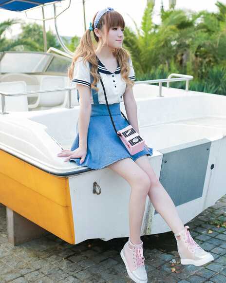背带短裙搭配t恤衫,很可爱甜美哦,喜欢可爱风的女生不妨试试看。