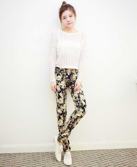 小清新味白色镂空罩衫,既能很好的遮阳又显时尚感,搭配花朵小脚裤,塑造出小细腿,加上一对小白鞋,超好看哦~~