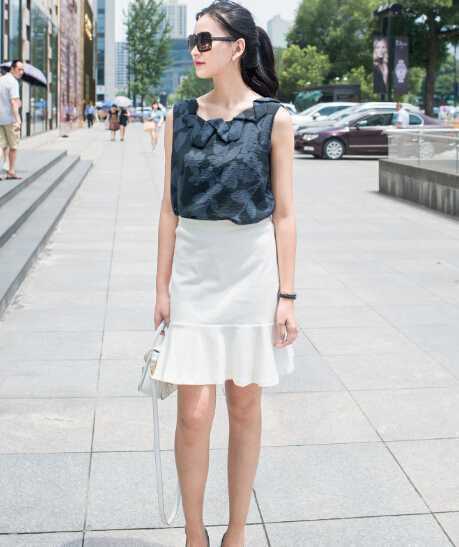 背心搭配包臀短裙,塑造出“小细腰”很显瘦,穿出十足时尚范。