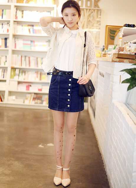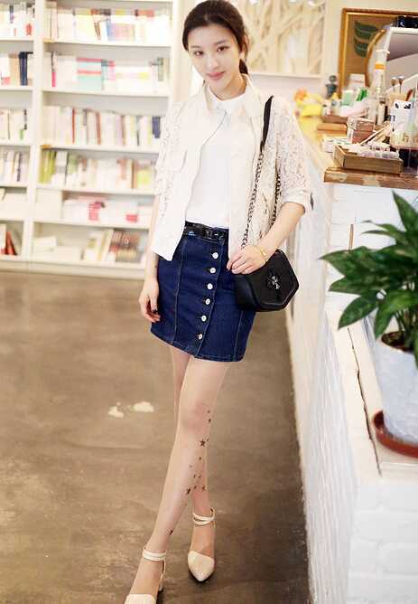雪纺衫束腰搭配牛仔短裙,露出美腿瞬间让你变高变瘦~~~
