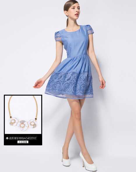 优雅端庄不失性感味的一款欧根纱连衣裙,高腰式凸显小细腰,很显瘦,搭配一条时尚花朵项链,尽展出你的女人魅力与时尚感。