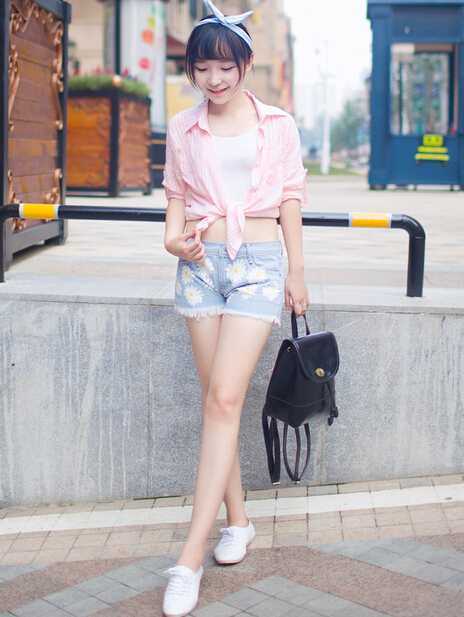小编点评:小清新粉色格子衬衫,内搭白色背心随意打个结,秀出你的小蛮腰很清凉与显瘦,搭配菊花短裤,秀出你的小细腿,演绎出乖巧女孩好形象。