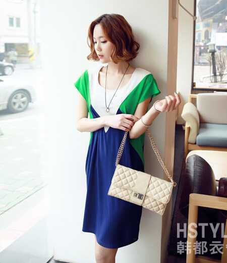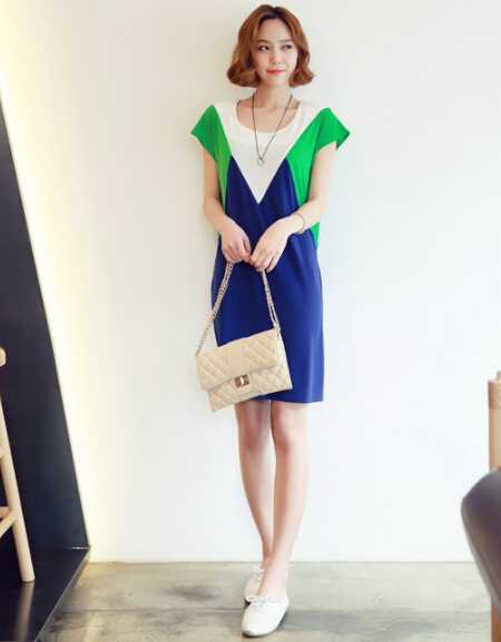 休闲宽松款韩版连衣裙,独特的几何设计,玩趣的撞色色彩,一袭独特时尚范儿,优雅拎着包包,十足女人味。