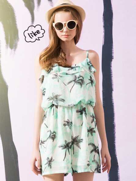 亲肤飘逸感的夏季雪纺连体裤,清凉感扑面而来,印花点缀着增添几分甜美感,搭配厚底鞋很显气质,周末这样穿出约会很完美哦。