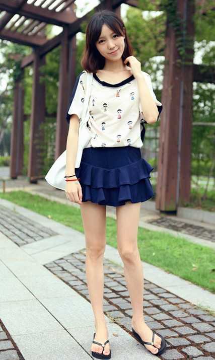 可爱甜美的一套搭配,下半身的短裙裤非常显腿长,而且十分安全,不会走光哦,上衣的小公仔印花甜美俏皮,秋天还能搭配打底袜,穿起来更加显高哦。
