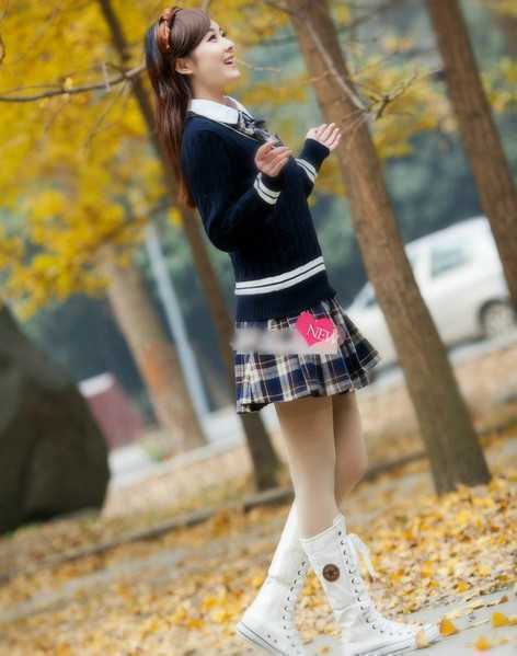 纯白色经典绑带中筒鞋,搭配加厚的肉色丝袜,穿起高挑清新气息,走在弥漫着秋意气息的校园,很青春洋溢呢。