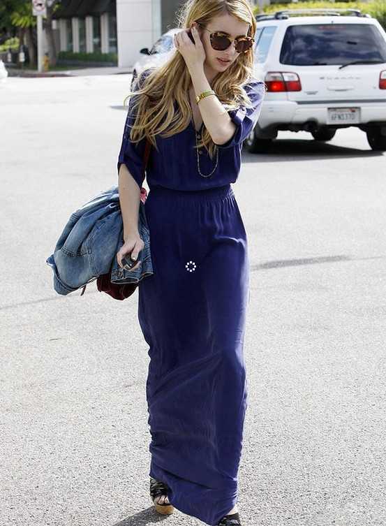 高腰蓝色长裙搭配