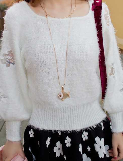 白色春季镂空花朵毛衣,百搭时尚款式,随意搭配裤装或裙装都很好看。