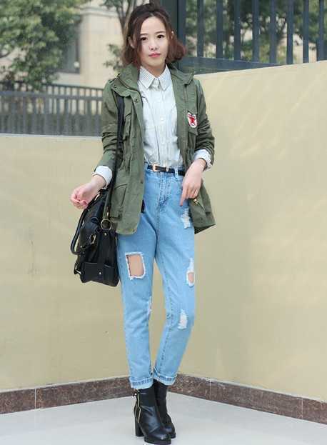 个性时尚感的春季牛仔裤,搭配清新淡绿色衬衫,给人一种帅气时尚感,搭配帅酷黑色靴子,凸显出高挑身材,穿出不一样的时尚感。
